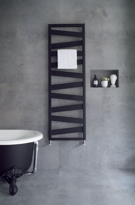 Jako by ocelový pás obepínal tento koupelnový radiátor: Zehnder Kazeane přesvědčí moderním designem a smyslem pro praktičnost. Jeho diagonálně uspořádané ploché trubky jsou inspirovány víceúrovňovými architektonickými díly. Originální řešení přináší tradičnímu koupelnovému „žebříku“ zcela novou dynamiku. Navíc je šikmé žebrování provedeno střídavě z obou stran radiátoru. Praktickou výhodou tohoto uspořádání je ještě více prostoru pro ručníky pro každého člena rodiny. Nový typ radiátoru je k dispozici v téměř 50 barevných odstínech, a to ve variantě pro teplovodní nebo kombinované vytápění. Navíc díky neotřelému modernímu designu jej lze využít (a doporučit) v prakticky kterékoli místnosti.
